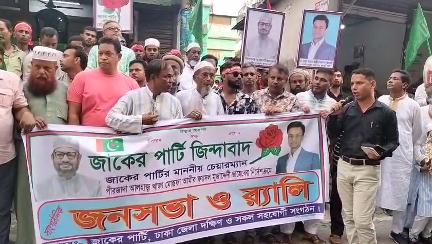 কেরাণীগঞ্জ: ঢাকার দক্ষিণ কেরাণীগঞ্জে জাকের পার্টির উদ্যোগে এক জনসভা ও র্যালি অনুষ্ঠিত হয়েছে।